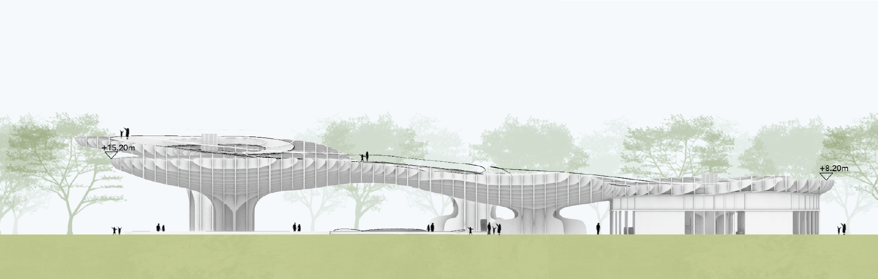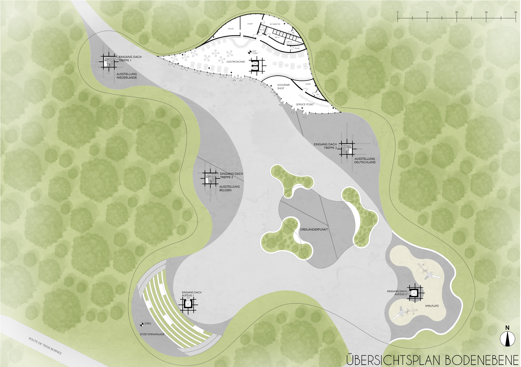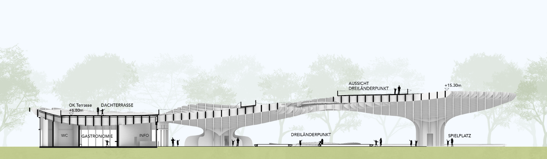incl. a restaurant, a reception area and a rooftop promenade